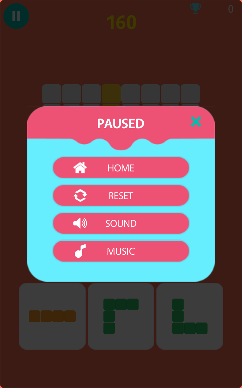 ✓Drag and drop blocks into 8×8 grid